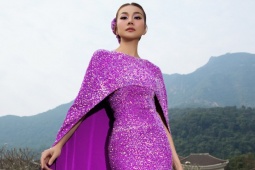 Trong phần trình diễn, Thanh Hằng gây ấn tượng khi diện bộ đầm ống ngang ngực màu tím, đi kèm là áo choàng kép tiệp màu dài quét đất. NTK tiết lộ, anh đã lấy cảm hứng từ nét duyên ngầm của người phụ nữ Việt Nam, nhẹ nhàng, tinh tế nhưng vẫn mạnh mẽ và quyến rũ, để thiết kế nên bộ trang phục này. Màu tím lấp lánh trên trang phục như ánh hoàng hôn Yên Tử được thu trọn vào tà áo. Trình diễn bộ trang phục lộng lẫy trong tiết trời se lạnh và dưới ánh hoàng hôn lãng mạn, Thanh Hằng nói cảm xúc của cô đong đầy, tăng lên rất nhiều lần.