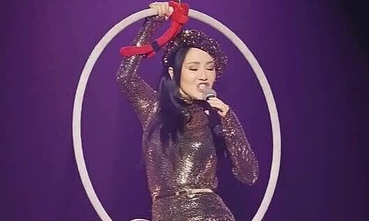 Ca sĩ Hồng Nhung đu dây trên không trong tiết mục kết hợp Lynk Lee, Lan Ngọc ở show "Đạp gió", tối 25/11.