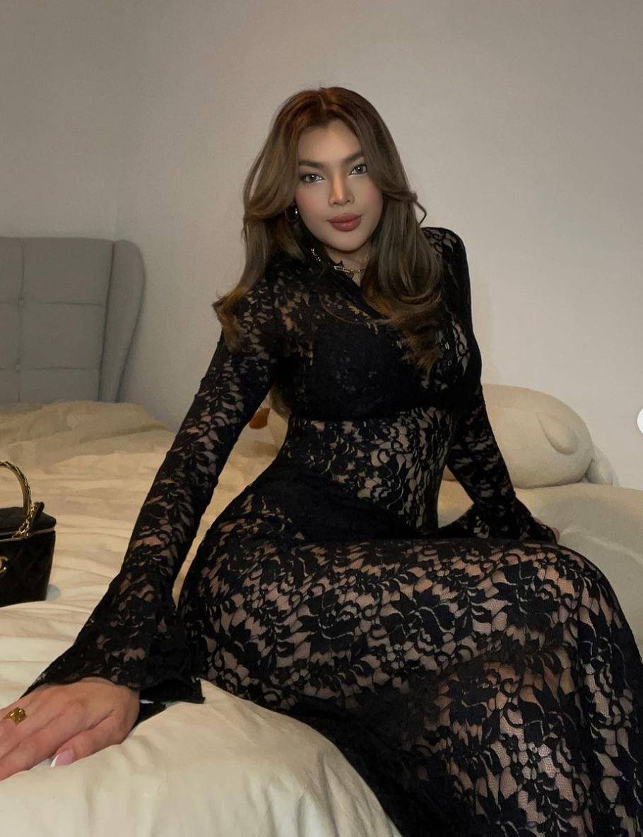 Với tư duy phóng khoáng, phong cách ăn mặc của Trân Đài cũng khá kiệm vải, chủ yếu là những set đồ tôn lên được đường cong nóng bỏng nơi người mặc. Thời gian gần đây, mỹ nhân sinh năm 1992 khá chuộng các bộ cánh chất liệu xuyên thấu, đơn cử như với outfit gần đây, chân dài tôn được hết vóc dáng nuột nà với chiếc váy ren xuyên thấu, lấp ló nội y đen bên trong.