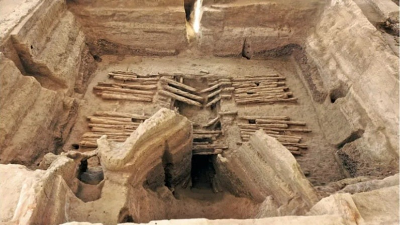 Được biết, nhóm khảo cổ đã khai quật được nhiều lễ hiến tế động vật trong đó có 87 con ngựa hoàn chỉnh được sắp xếp theo thứ tự đặc biệt. Ngoài ra, phía trên quần thể lăng mộ có mộ địa đất rất cao nên trong dân gian mới lưu truyền cách gọi "chín tầng tháp quỷ".