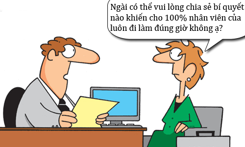 – Ông có thể vui lòng chia sẻ bí quyết nào khiến cho 100% nhân viên của công ty ông luôn đi làm đúng giờ không ạ?