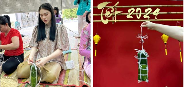 Vào những ngày cuối cùng của năm, có thể thấy nàng dâu hào môn Linh Rin năng nổ hoạt động MXH hơn bao giờ hết, chủ yếu là cập nhật không khí Tết trong nhà mình. Sau khi đăng tải những hình ảnh Tết cận kề trong căn biệt thự quận 2 khiến netizen chú ý, Linh Rin tiếp tục khoe ảnh cùng chồng thiếu gia Phillip Nguyễn gói bánh tét ăn Tết.