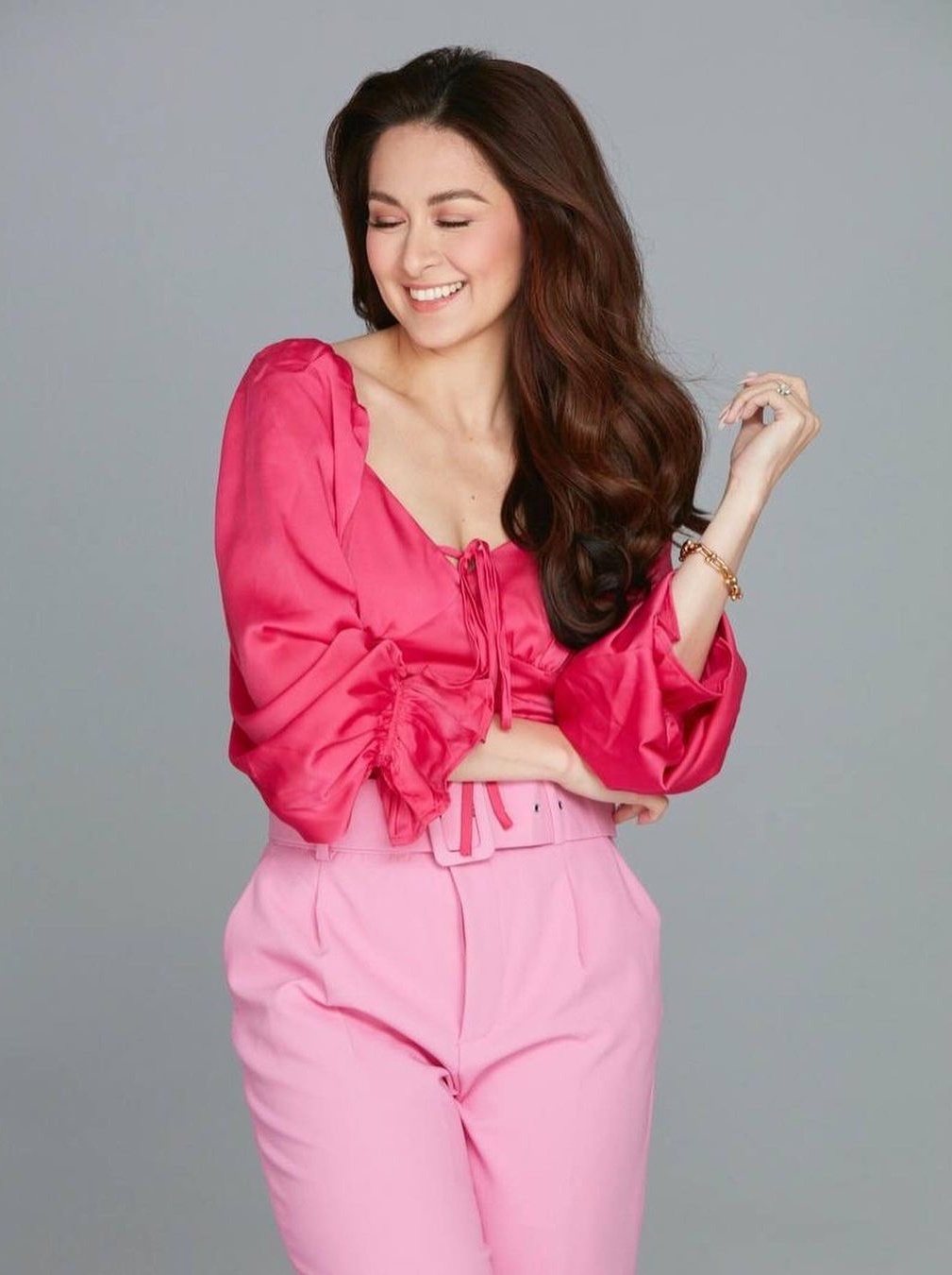 Trên Instagram có 13 triệu lượt theo dõi, Marian Rivera liên tục đăng ảnh diện váy áo hồng, được nhiều đồng nghiệp và fan nhận xét "tỏa sáng như kẹo ngọt".
