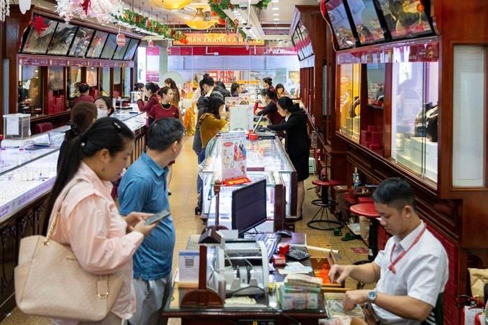 Old  Default Nhân viên bán vàng 'không kịp nghỉ tay' vì người dân xếp hàng mua đông nghịt trước ngày vía Thần tài
