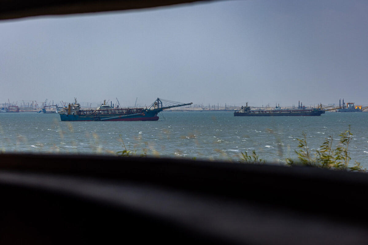 Tàu nạo vét cát của Trung Quốc nhìn từ một đài quan sát ở Kim Môn, Đài Loan, vào ngày 24/09/2022. Kim Môn, một hòn đảo ở eo biển Đài Loan thuộc lãnh thổ của Đài Loan, gần Trung Quốc đến nỗi cảng nước sâu Hạ Môn, một trong số những cảng nước sâu lớn nhất Trung Quốc, nằm cách đó chỉ ít hơn ba dặm trên mặt nước. (Ảnh: Annabelle Chih/Getty Images)