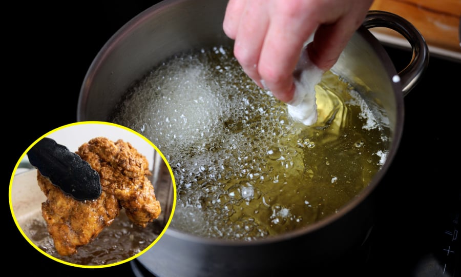 Khi chiên rán, bạn cũng cần đảm bảo dầu đủ nóng rồi mới bỏ thực phẩm vào chiên. Bỏ thực phẩm vào từ khi dầu nguội sẽ khiến món ăn bị ngấm dầu và khó giòn.