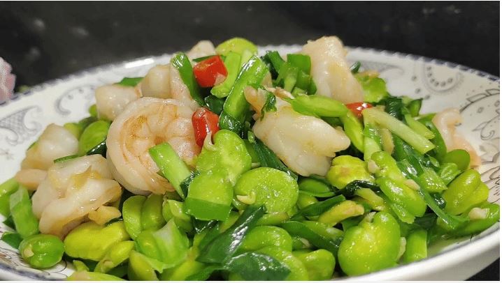 Từng hạt đậu tằm tươi và dẻo, tôm giòn và mềm, có mùi thơm của hẹ và ớt, cay nhẹ, rất ngon miệng, ăn với cơm có hương vị rất thơm ngon.