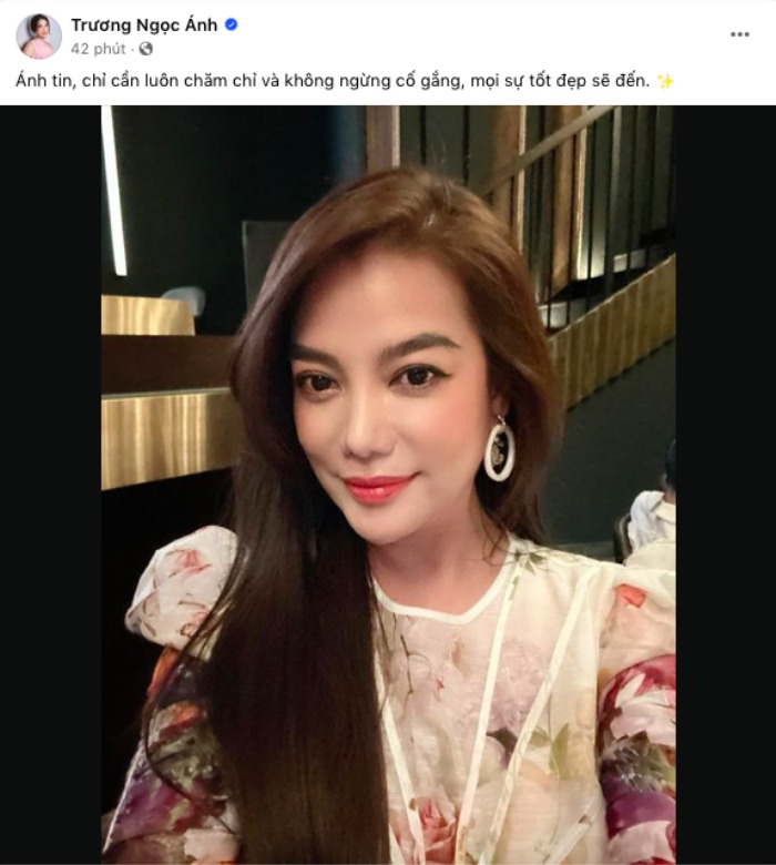Cách đây chưa lâu, thông tin Trương Ngọc Ánh và tình trẻ kém 14 tuổi - diễn viên Anh Dũng vướng nghi vấn trục trặc. Mới đây nhất, Trương Ngọc Ánh thường xuyên đăng tải những chia sẻ ẩn ý. Điển hình như tối 30/3, nữ diễn viên viết: "Ánh tin, chỉ cần luôn chăm chỉ và không ngừng cố gắng, mọi sự tốt đẹp sẽ đến". Hay trước đó ít ngày, khi tin đồn trục trặc hôn nhân với Anh Dũng nổ ra, Trương Ngọc Ánh cũng nhắc đến "anh bạn": "Anh bạn mình nói cứ 'ngồi im' mọi thứ sẽ an bài, nhưng ngồi im thực chất cũng cần cố gắng và tập luyện mới làm được".