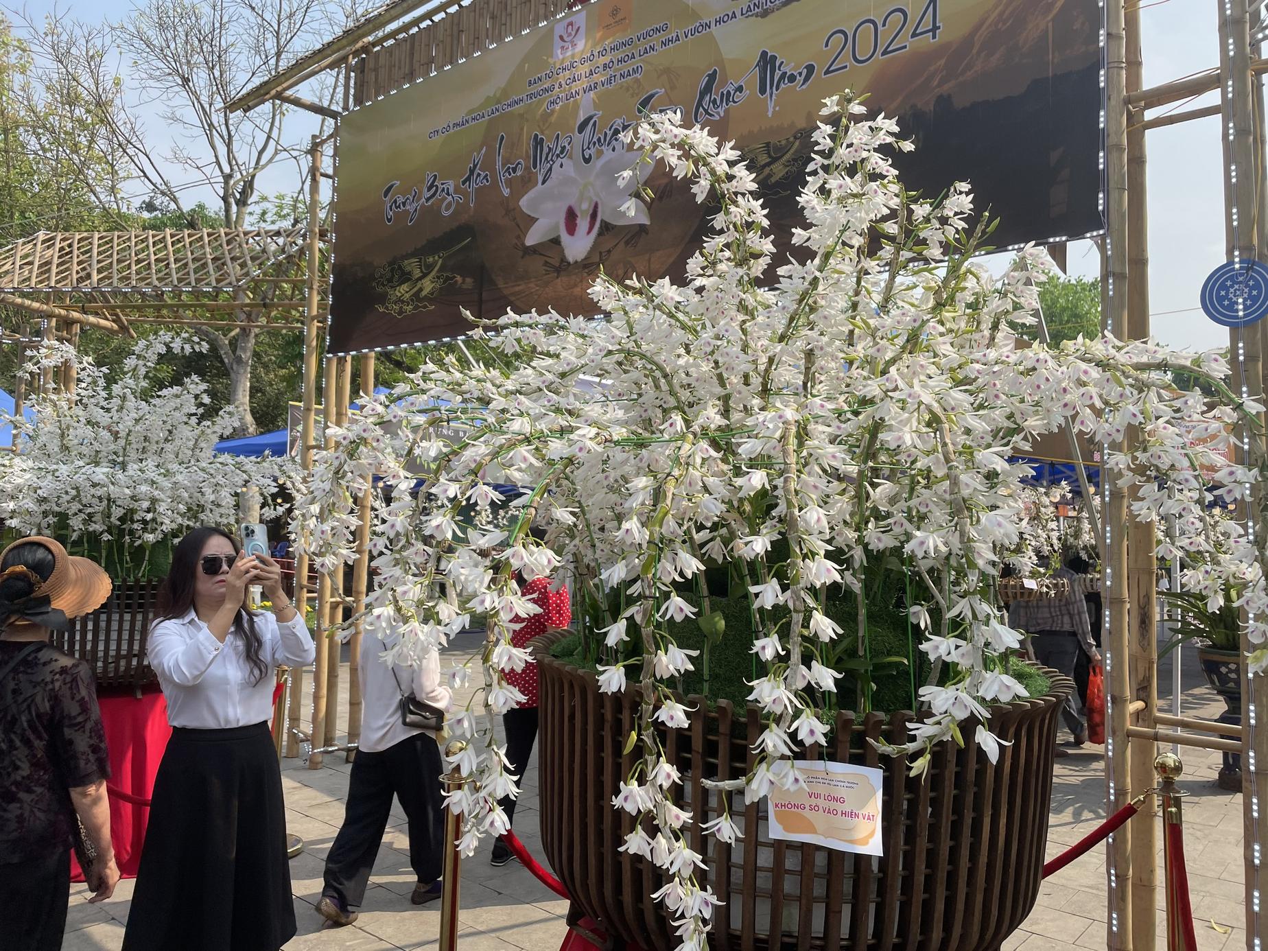 Chậu hoa lan 5 cánh trắng "khủng" nhất Việt Nam hút khách ở Đền Hùng, có gì mà ai cũng phải xếp hàng chiêm ngưỡng?