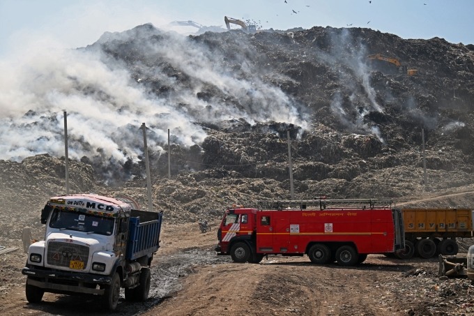 Đám cháy tại Ghazipur, bãi rác lớn nhất thủ đô New Delhi, bốc lên từ ngày 21/4 mà không rõ nguyên nhân. Đến 23/4, phần lớn đám cháy đã được dập tắt, nhưng người dân sống gần đó than phiền đau mắt, đau họng do không khí độc hại.