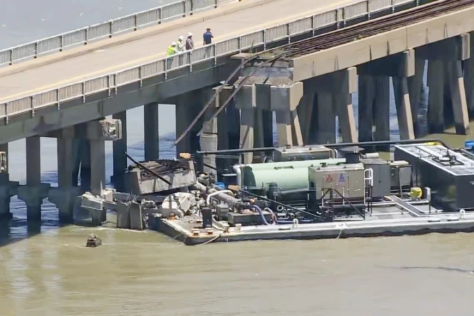 Giới chức Mỹ cho biết chiếc sà lan chở nhiên liệu tông vào cây cầu ở Galveston sáng 15/5, khiến các phương tiện phải dừng lưu thông qua cầu. Spencer Jones, phát ngôn viên của văn phòng xử lý tình huống khẩn cấp hạt Galveston nói rằng vào thời điểm xảy ra va chạm, chiếc sà lan có hai người điều khiển, trong đó một người rơi xuống nước nhưng đã được cứu ngay lập tức.