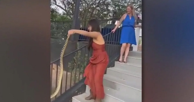 Trong video, người phụ nữ mặc áo váy màu đồng và đi bốt cao cổ màu be được xác định là em gái cô dâu đang cầm trên tay một con rắn dài màu nâu. Vừa di chuyển xuống cầu thang vừa cầm đuôi con rắn, người phụ nữ đi tới khu rừng bên ngoài địa điểm tổ chức đám cưới và thả con vật đi. Cô luôn nở nụ cười trong suốt quá trình đối mặt với con rắn.