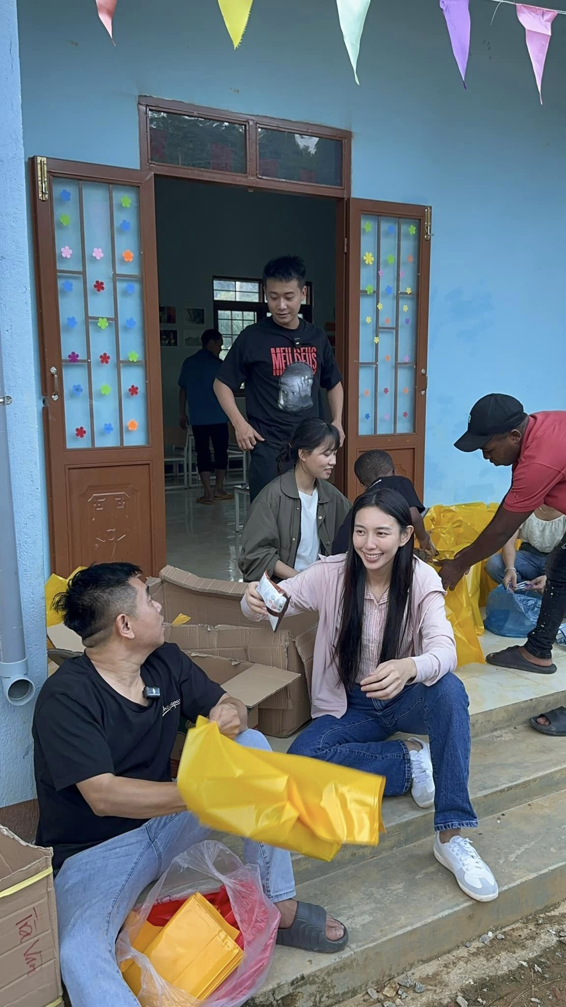 Thuỳ Tiên đồng hành cùng Quang Linh Vlogs trong chuyến từ thiện.