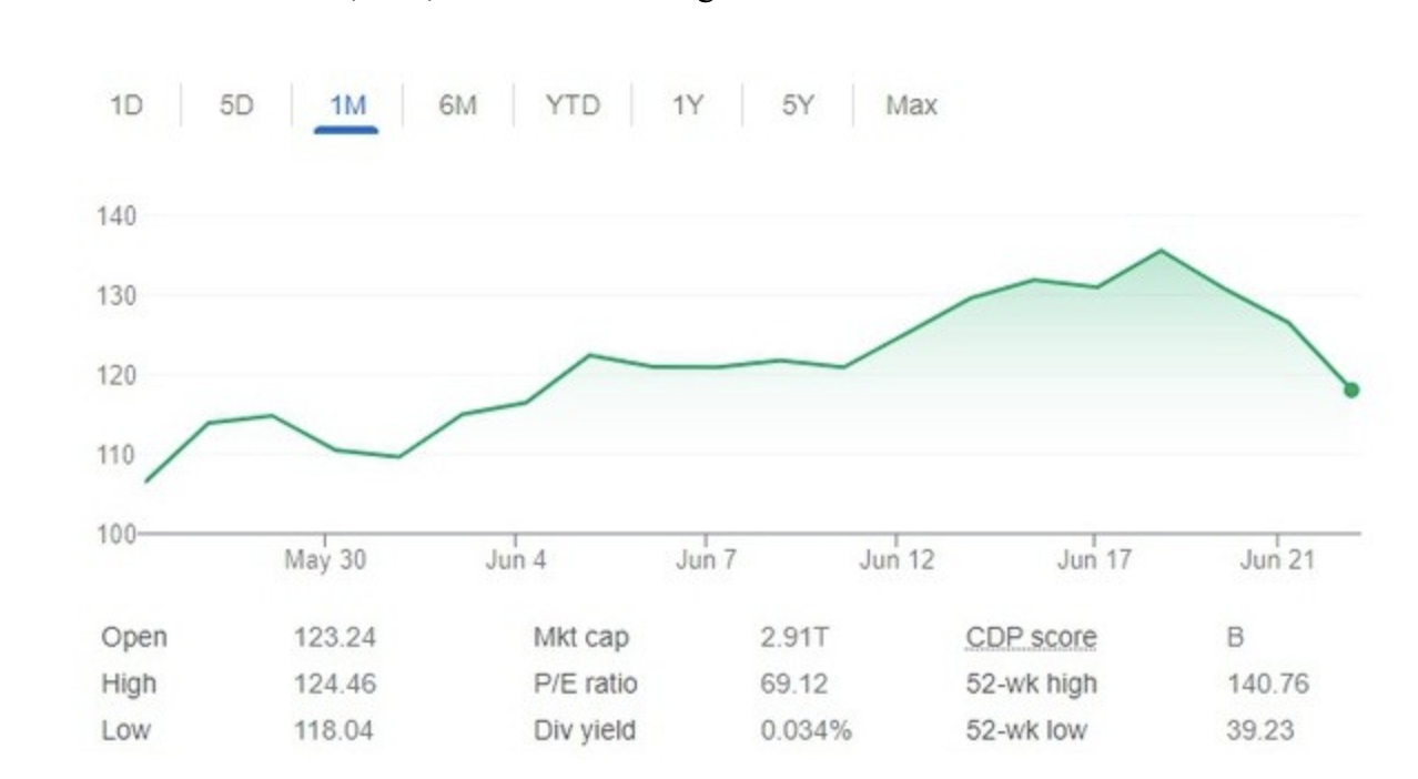 Kể từ thời điểm trở thành công ty giá trị nhất thế giới vào tuần trước, Nvidia đã chứng kiến cổ phiếu giảm trong 3 phiên giao dịch liên tiếp và hiện đã giảm tới 13% kể từ mức đỉnh, thổi bay 430 tỷ USD vốn hóa thị trường.