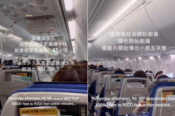 Máy bay của hãng Korean Air bị hạ độ cao 8.000 mét trong 15 phút, khiến hành khách hoảng sợ, la khóc, lo 'máy bay đâm xuống đất'.