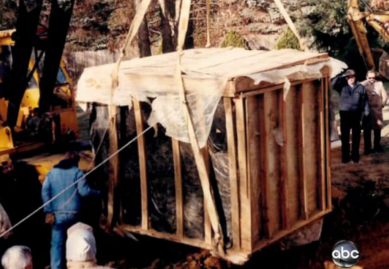 Cảnh sát di dời boongke giam cầm Katie từ dưới vườn nhà kẻ bắt cóc. Ảnh: ABC