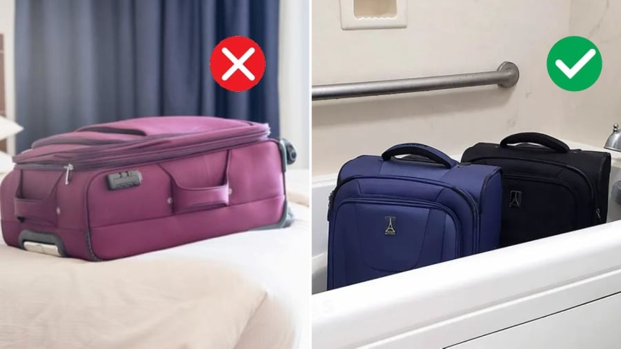 Thoạt nghe, bạn có thể cảm thấy việc làm này khá vô nghĩa. Tuy nhiên, nó mang lại lợi ích tuyệt vời. Việc bỏ vali trong phòng tắm sau khi nhận phòng sẽ giúp bạn tránh khỏi sự tấn công của rệp giường.