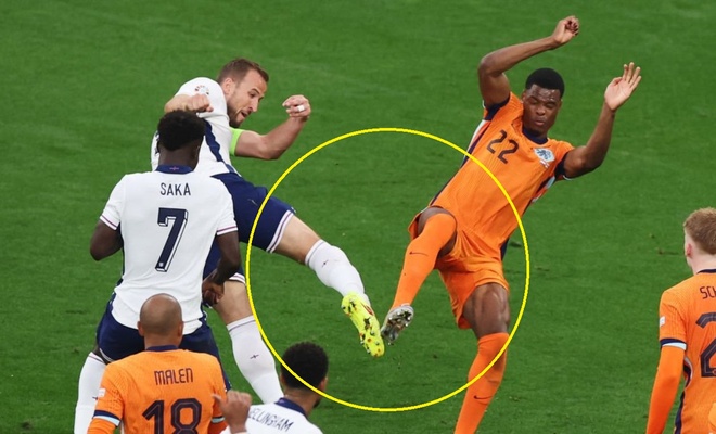 Ở tình huống trong trận bán kết EURO 2024 trên sân Signal Iduna Park, gầm giày của Dumfries giơ lên khá cao. Hậu vệ thuộc biên chế Inter Milan dường như khiến Kane sợ hãi, không thể tung cú sút ở tư thế tốt nhất.