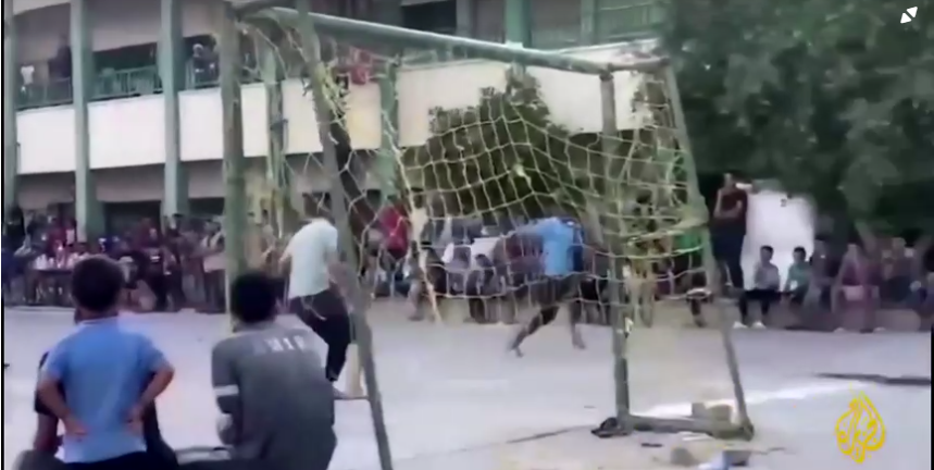Video do Al Jazeera phát sóng cho thấy khoảnh khắc một cuộc không kích của Israel nhằm vào một trường học được sử dụng làm nơi trú ẩn cho người Palestine di tản ở Gaza hôm thứ Ba (9/7) phía đông Khan Younis. Theo các viên chức Palestine, ít nhất 29 người, chủ yếu là phụ nữ và trẻ em, đã thiệt mạng trong cuộc không kích, diễn ra khi khán giả tập trung đông đúc tại sân trường ở Abassan để xem đá banh và những người bán hàng rong bán sinh tố và bánh quy. Đoạn video cho thấy thanh thiếu niên đang chơi đá banh trong sân thì nghe thấy một tiếng nổ lớn làm mọi người bỏ chạy tán loạn. Máy ảnh tiếp tục quay phim cho thấy một số thi thể và mảnh vỡ trên mặt đất. Quân đội Israel cho biết họ đang xem xét các báo cáo cho thấy dân thường bị tổn hại. Do Thái cho biết sự việc xảy ra khi hỏa tiển bắn vào một chiến binh Hamas, người tham gia cuộc đột kích ngày 7 tháng 10 vào Israel. Quân đội đã không trả lời ngay lập tức yêu cầu bình luận về việc liệu họ có biết rằng một trận đấu đá banh đang diễn ra khi được lệnh không kích hay không