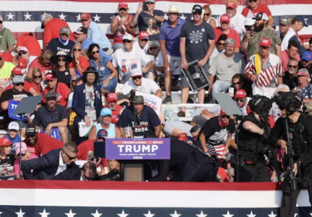 Trong sự kiện vận động tranh cử tại tiểu bang Pennsylvania, ông Trump đã bị bắn vào tai. Các quan chức cho rằng đây là một vụ ám sát. Ông Trump với khuôn mặt dính máu, đã giơ cao nắm đấm ngay sau vụ tấn công. Lực lượng Mật vụ và cả đội ngũ phụ trách chiến dịch tranh cử của ông Trump cho biết ông vẫn an toàn sau vụ nổ súng.