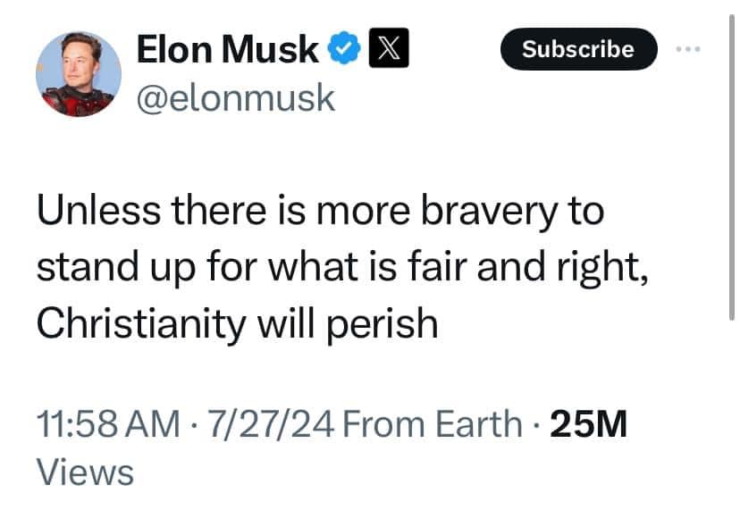 Elon Musk thì nói: Ngoại trừ có những người can đảm lên tiếng. Nếu không Công giáo sẽ biến mất.