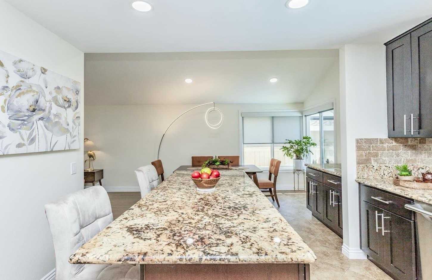 Không gian bếp và phòng ăn mở rộng, nội thất cao cấp và đắt đỏ. Thúy Nga dành nhiều thời gian hoàn thiện căn biệt thự, trực tiếp theo dõi quá trình thi công từ phần thô đến các chi tiết nhỏ. Nữ nghệ sĩ lắp đặt hệ thống máy lọc nước hiện đại để có nguồn nước sạch tiêu chuẩn, đảm bảo an toàn cho sức khoẻ.