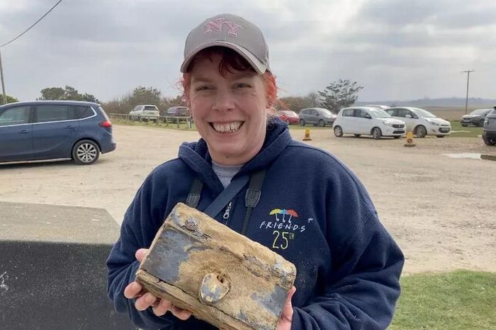 Khi đang nhặt rác trên bãi biển ở Norfolk, Anh, Jennie Fitzgerald, 38 tuổi, bất ngờ phát hiện một chiếc rương gỗ nhỏ nhô lên khỏi cát.