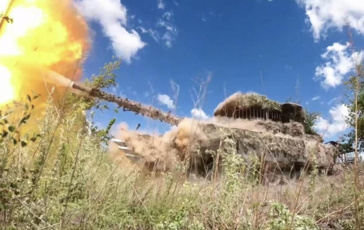 Xe tăng T-80 của Nga khai hỏa về phía Avdiivka từ một vị trí không xác định. Ảnh: Bộ Quốc phòng Nga