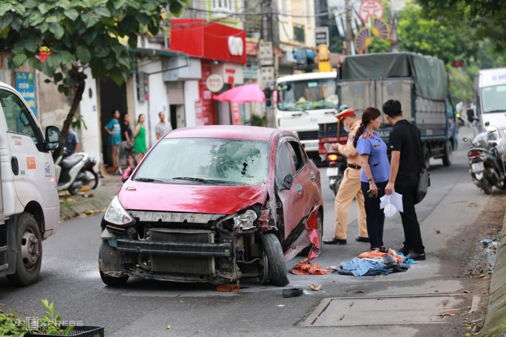 Chiều 30/7, Huân lái xe 4 chỗ màu đỏ trên đường Vinh Khang, huyện Thanh Trì. Đến ngã ba gần chùa Ngọc Hồi, ông này tông xe máy người phụ nữ đi cùng chiều văng lên vỉa hè. Nạn nhân bị thương nặng.