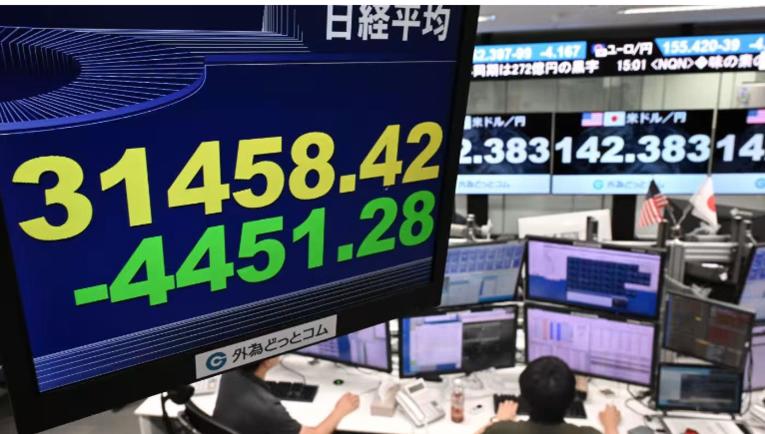 Nikkei 225 chốt phiên giảm 12,4% xuống còn 31.458,42 điểm vào ngày đầu tuần, đánh dấu mức giảm sâu nhất từ trước đến nay. Kết quả là, toàn bộ mức tăng của Nikkei trong năm nay bị thổi bay và đưa chỉ số này sang trạng thái lỗ tính từ đầu năm đến nay.