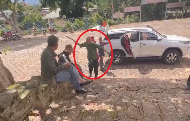 Người hành hung người bán vé số được xác định là Ngô Đức Long, bảo vệ chùa Linh Ẩn. Ảnh cắt từ clip.