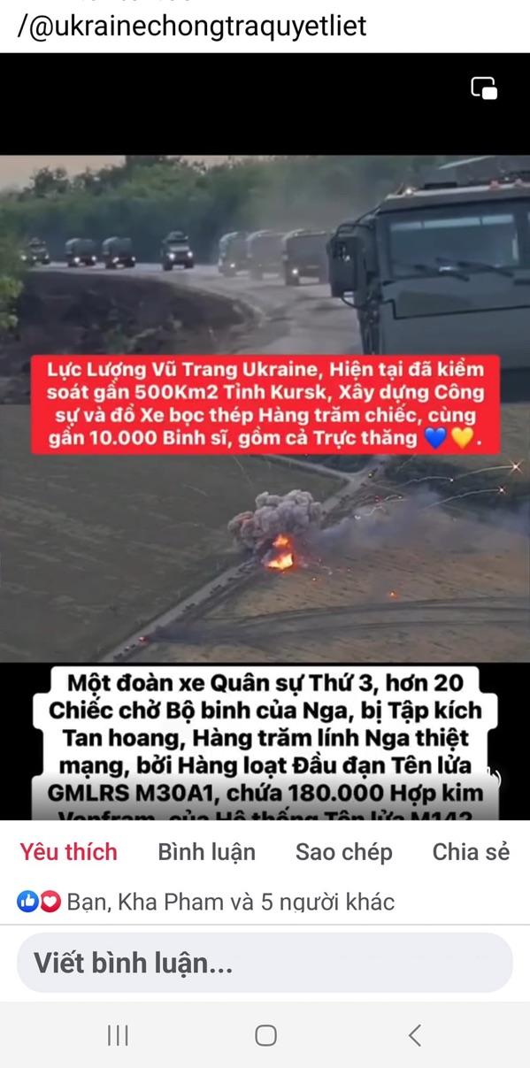 Sự đột phá của quân đội Ukraine vào khu vực #Kursk và sự tiến công của họ trong nhiều ngày đă khiến các quan chức chính phủ cấp cao và các doanh nhân gần gũi với Điện Kremlin hoang mang. Cách đây không lâu, giới tinh hoa đă suy đoán rằng Pu toang có thể sẽ tiến hành các hoạt động quân sự vào các nước láng giềng #NATO để chiếm các thành phố như Narva ở #Estonia . Bây giờ t́nh h́nh đă thay đổi, và tất cả những người này đều tin rằng t́nh báo Ng@ đă thất bại, và cùng với đó là Pu toang.