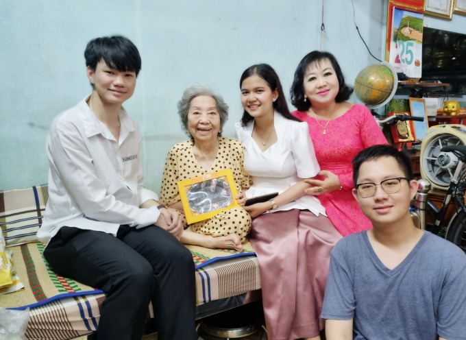 Chandara, 22, a student at Ton Duc Thang University, became especially close to Uyen’s family. Having lost his mother just before starting university, Chandara was dealing with a sick father and a sister facing financial struggles. Initially reserved and friendless, Uyen welcomed him into her home, inviting him to family gatherings, giving him small allowances, and sending him back to his dorm with snacks and fruits. Over time, he became like family, even helping care for Uyen’s bedridden 87-year-old mother. He was treated as a family member during holidays like Tet, receiving lucky money as a gesture of good fortune.