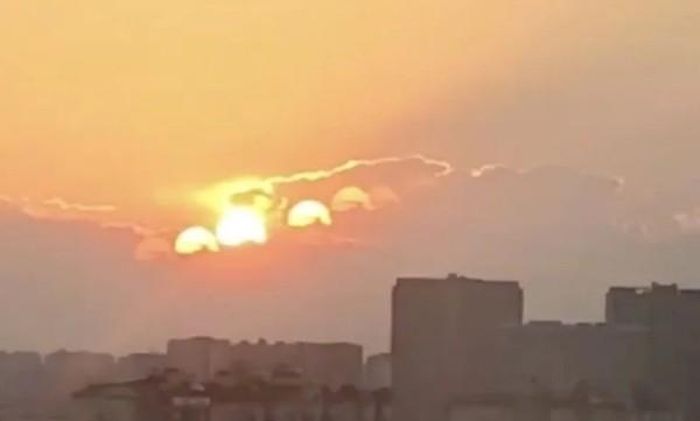 Một hiện tượng bí ẩn mới đây đã xảy ra trên bầu trời ở thành phố Thành Đô (tỉnh Tứ Xuyên, Trung Quốc), đó là 7 Mặt Trời cùng tỏa sáng!