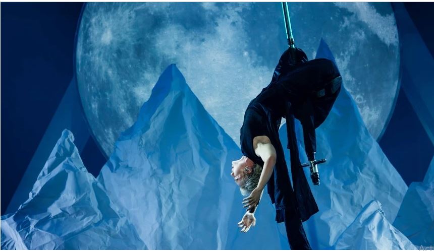 Khi đang treo mình trên cao để thể hiện tiết mục "Khiêu vũ dưới trăng", Erik trượt tay khỏi đạo cụ rồi ngã nhào xuống đất.