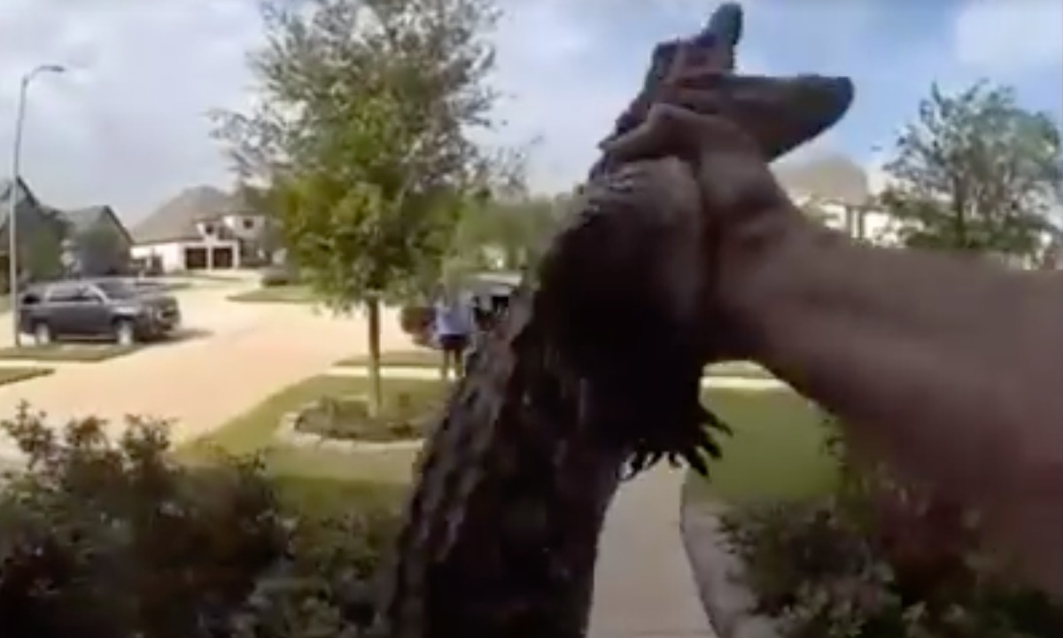 Một sĩ quan cảnh sát Texas được ví như "siêu nhân" khi tay không bắt cá sấu trước cửa nhà dân, khi họ gọi cứu hộ khẩn cấp.