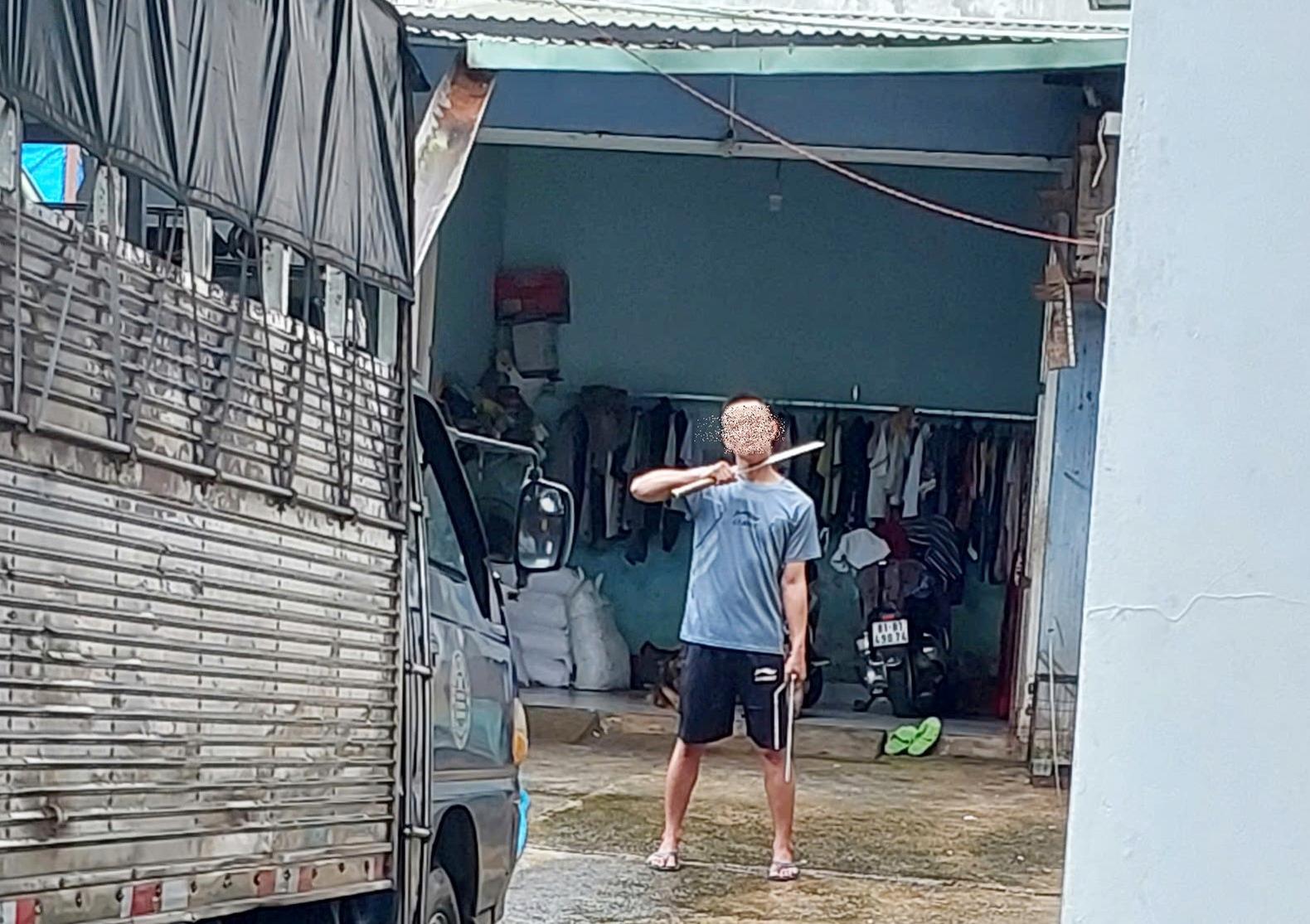 Mâu thuẫn với vợ, người đàn ông kề mã tấu vào cổ dọa tự sát- Ảnh 2.