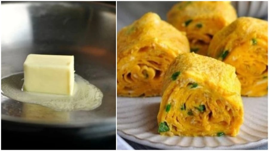 Nếu trong tủ lạnh đang có sẵn vài miếng bơ nhỏ, đừng chần chừ mà bỏ thêm vào món trứng tráng rồi đánh thật kỹ. Khi bơ tan chảy trong hỗn hợp trứng, nó sẽ tạo ra một “lớp đệm” giữa các protein trong trứng, khiến cho món trứng khi tráng xong sẽ rất mềm, mịn bởi các protein trứng không thể bám chặt vào nhau.