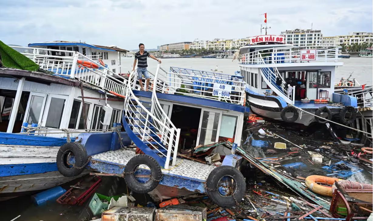 Cơ quan quản lý thảm họa cho biết 30 tàu đã bị chìm ở các khu vực neo thuyền ở tỉnh ven biển Quảng Ninh dọc theo Vịnh Hạ Long sau khi bị gió mạnh và sóng đánh trúng.