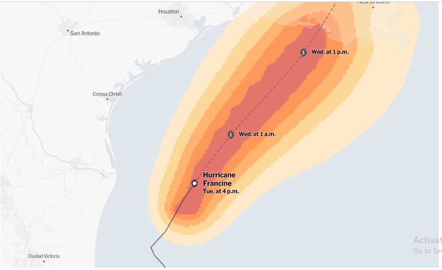 Francine dự kiến đổ bộ vào Louisiana vào sáng 11/9. Ảnh: NYT.
