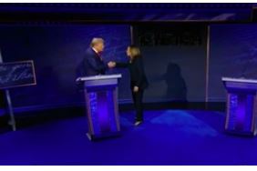 Hai ứng viên tổng thống của đảng Dân chủ và đảng Cộng hoà đã bắt tay chào hỏi nhau khi xuất hiện trên sân khấu của đài ABC tại tại Trung tâm Hiến pháp quốc gia thành phố Philadelphia.