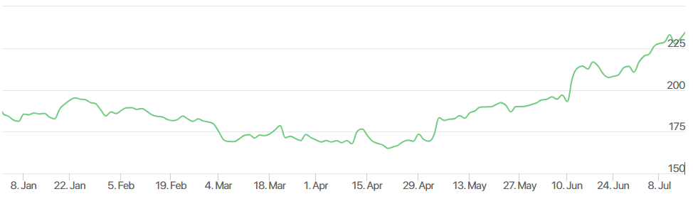 Diễn biến cổ phiếu Apple từ đầu năm. Đồ thị: Apple