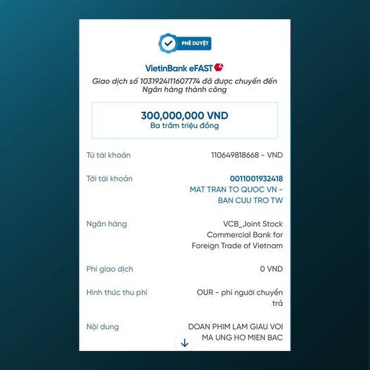 Đoàn Làm giàu với ma phim hỗ trợ người dân miền Bắc khắc phục thiên tai từ bão Yagi. Ảnh: NSX