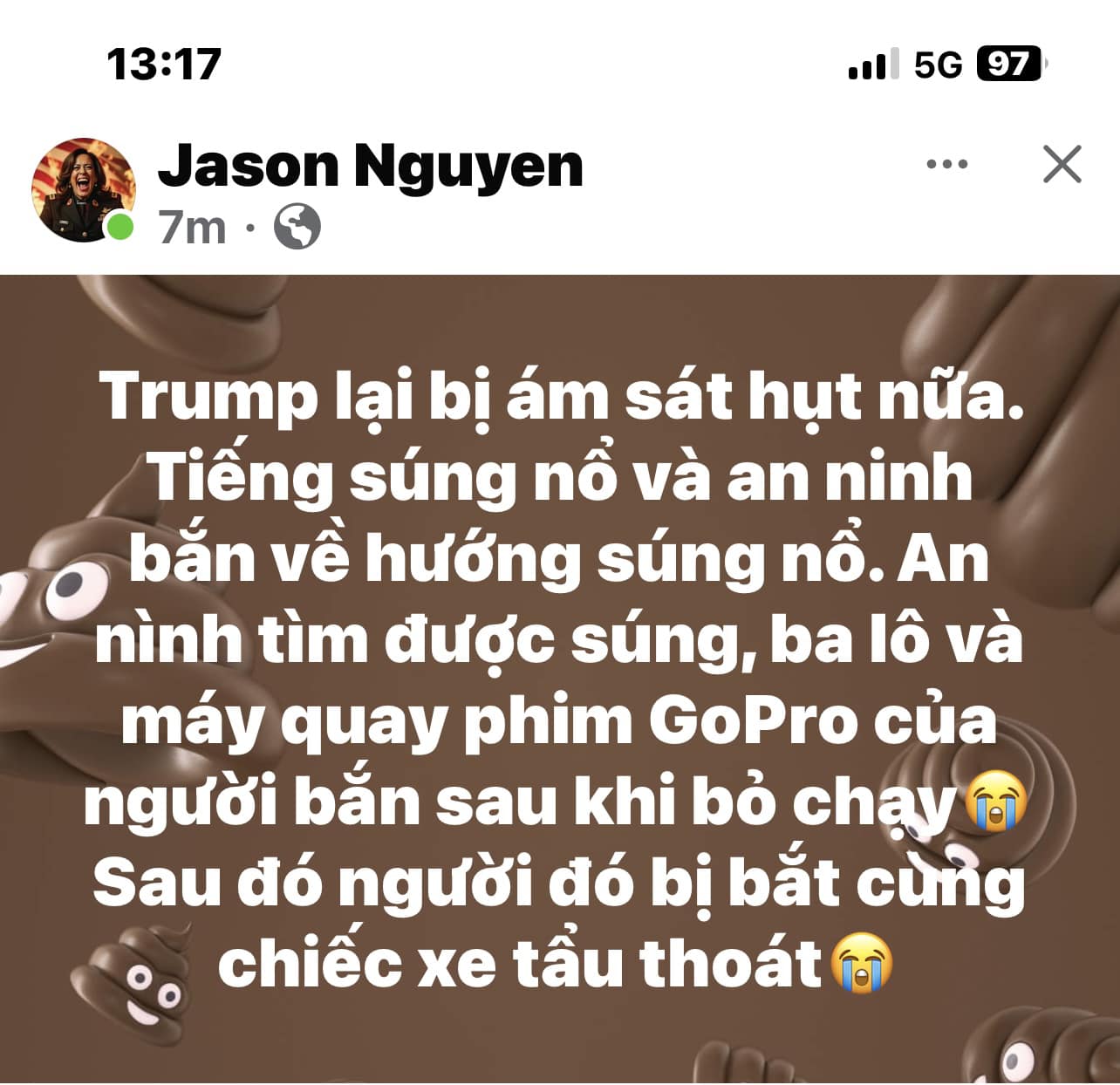 Súng lại nỗ trong khu vực ông Trump chơi Golf hôm nay ở West Palm Beach, Florida , nhưng ông Trump vô sự. Chưa có tin tức gì khác.