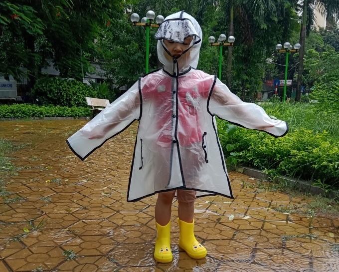 Trẻ hạn chế đến nơi đông người, cần đeo khẩu trang khi ra ngoài hoặc tiếp xúc với nơi đông người. Chuẩn bị cho bé ô, áo mưa, ủng để đề phòng cơn mưa có thể tới bất chợt.