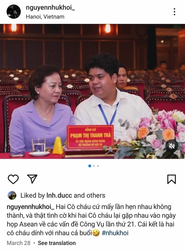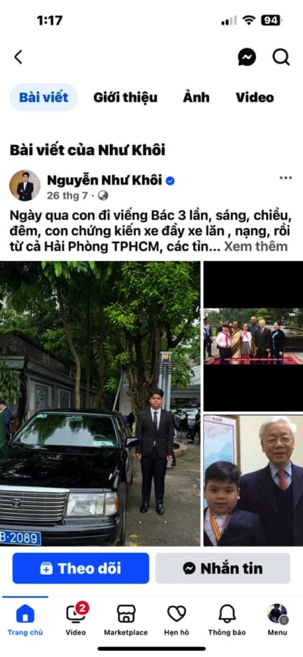 Nguyễn Như Khôi tự nhận là cháu nội của ông 7 Phúc, cựu chủ tịch nước VC.