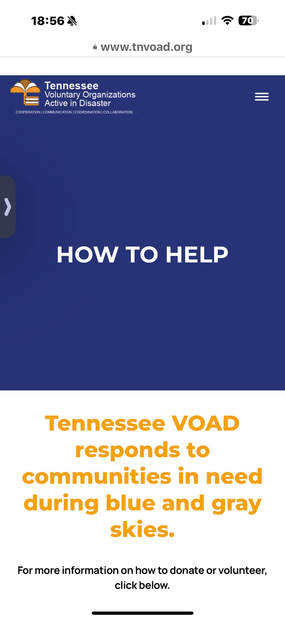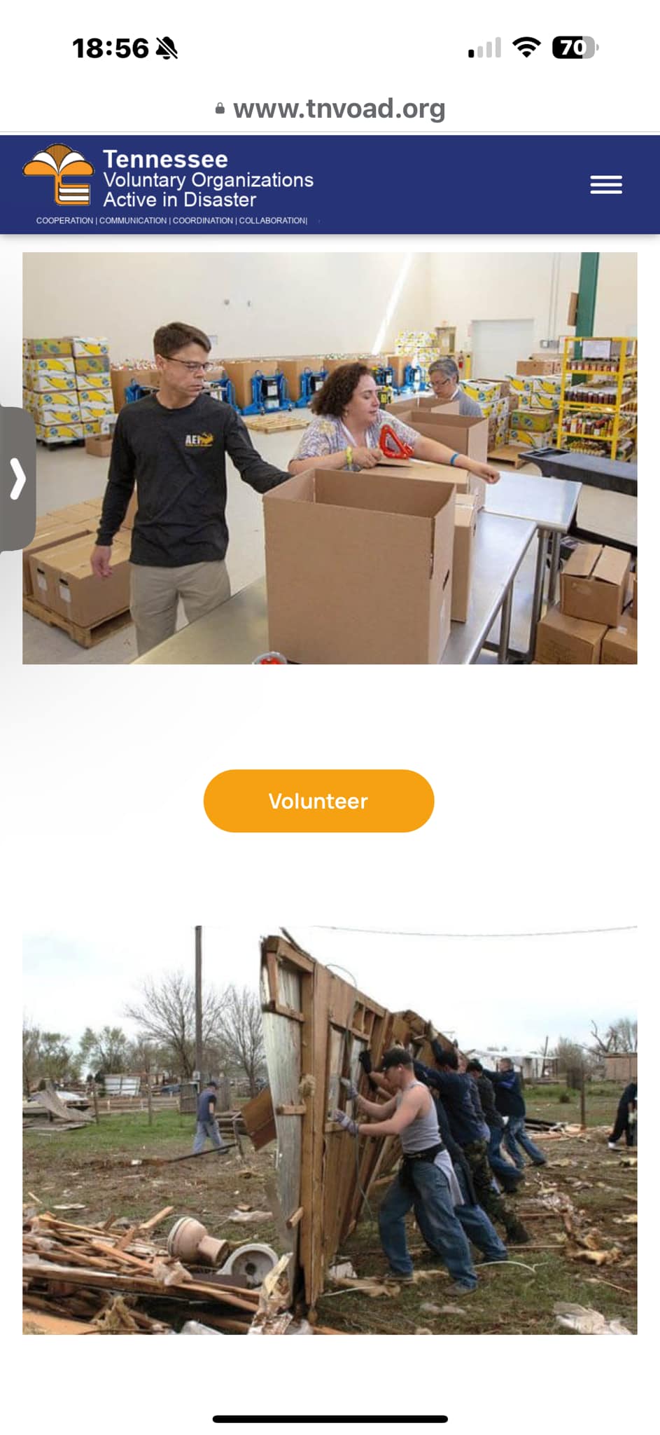 TEMA hợp tác với Tennessee Voluntary Organizations Active in Disasters (TNVOAD). Để biết thêm thông tin: https:// tnvoad.org/how-to-help/