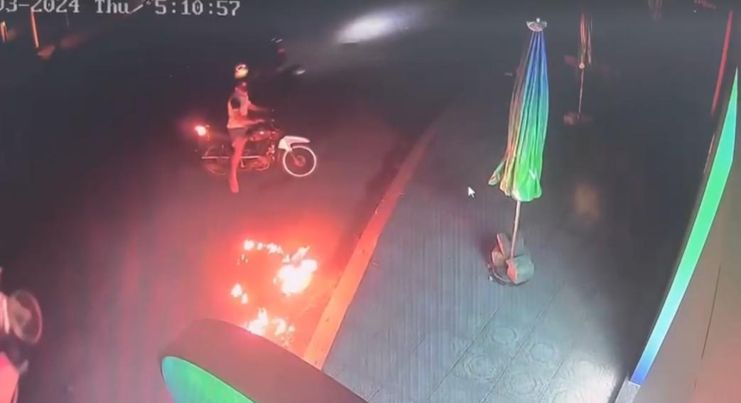 Bảo vệ ngân hàng cùng người dân gần đó phát hiện sự việc, nhanh chóng dập lửa. Vụ cháy làm hư hỏng nhẹ một trụ ATM.