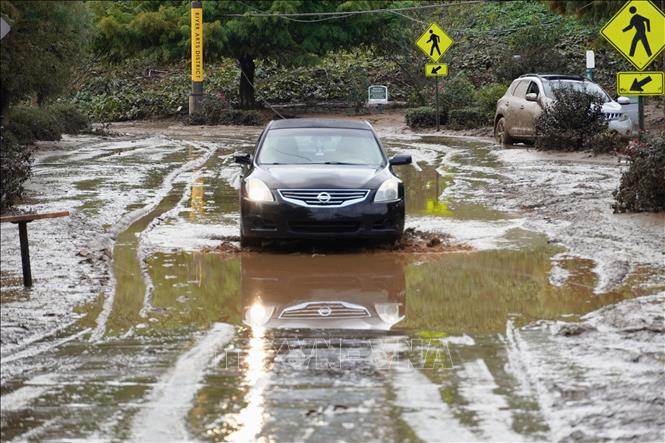 Bùn lầy trên một đoạn đường ở Asheville, bang North Carolina, Mỹ sau khi bão Helene quét qua, ngày 1/10/2024. Ảnh minh họa: Kyodo/TTXVN