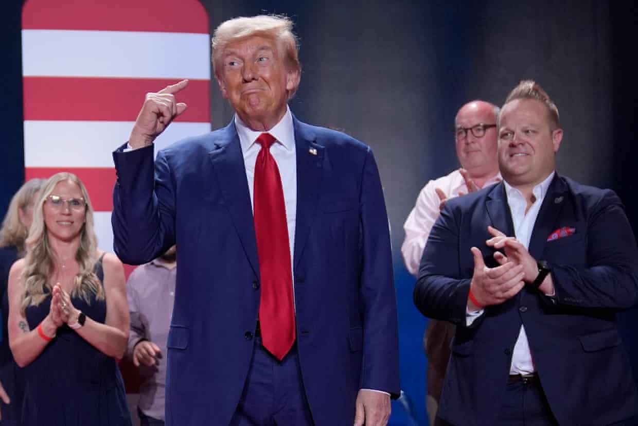 Donald Trump tại một cuộc họp thị trấn vận động tranh cử vào thứ sáu tại Fayetteville, Bắc Carolina. Ảnh: Evan Vucci/AP